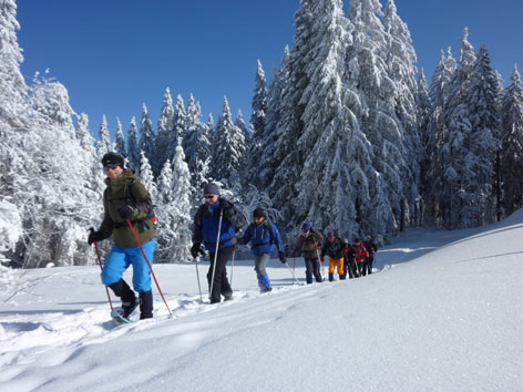 Schneeschuhwandern kann ganz leicht erlernt werden. Auf einsamen Spuren streifen wir durch die Winterwelt, durch tief verschneite Wälder und über sonnige Bergkuppen. Aktiv den Winter und die Aussicht (und nach der Tour die Schwarzwälder Kirschtorte) genießen. Für die Touren sind